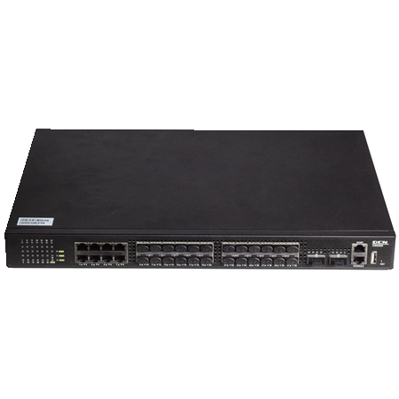 CS6200-28X-HI-24F:24个千兆SFP光口+16个复用的千兆电口+4个10G SFP+光口+2个QSFP堆叠口(20G带宽),支持双热插拔电源;
