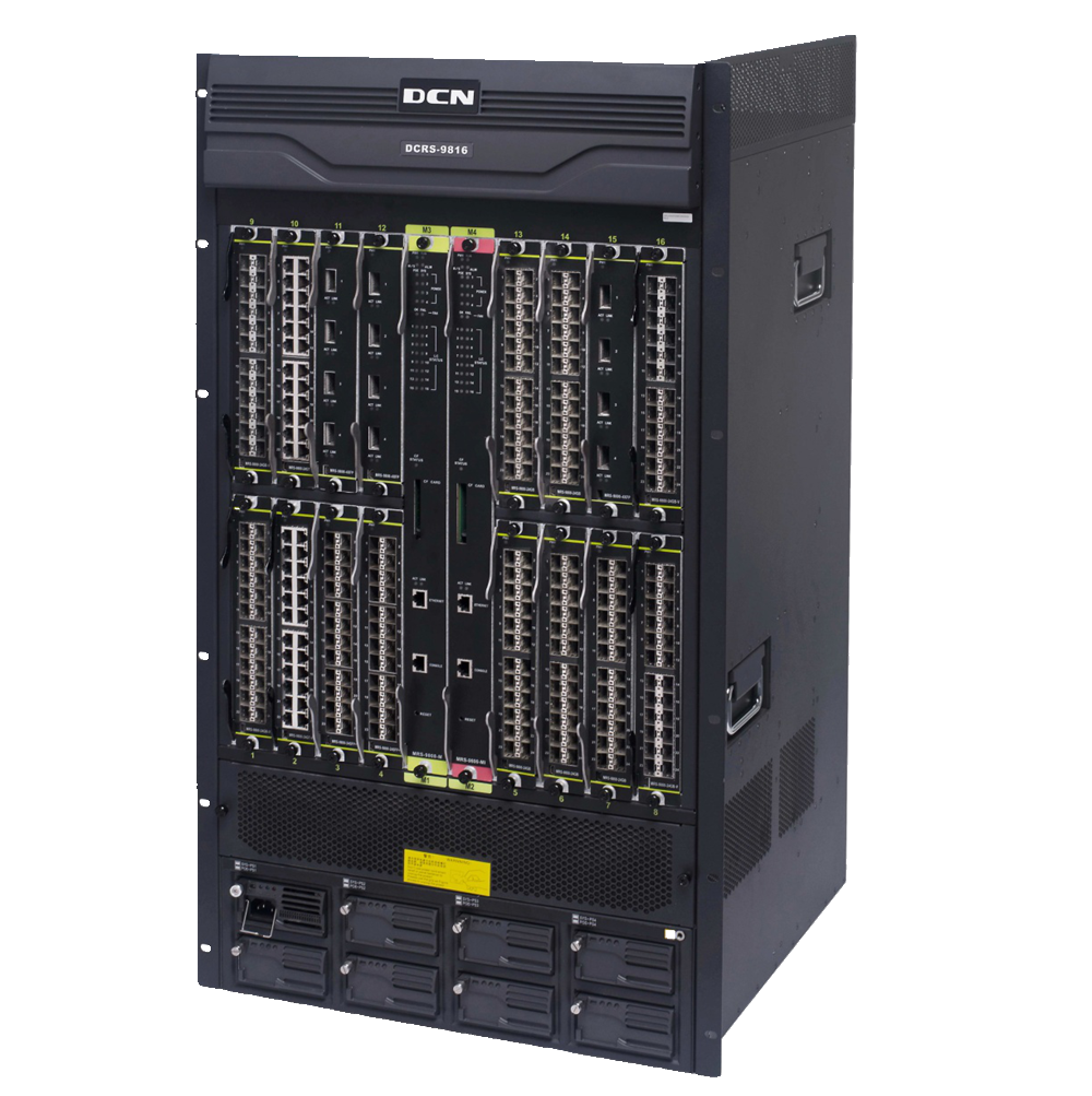 DCRS-9816 DCRS-9816机箱式路由交换机主机(16个标准业务插槽, 2个超级管理引擎插槽,研讨电源3+1冗余,PoE电源3+1冗余),标配1个MRS-9800-AC研讨电源,不含管理引擎模块和交换网板模块