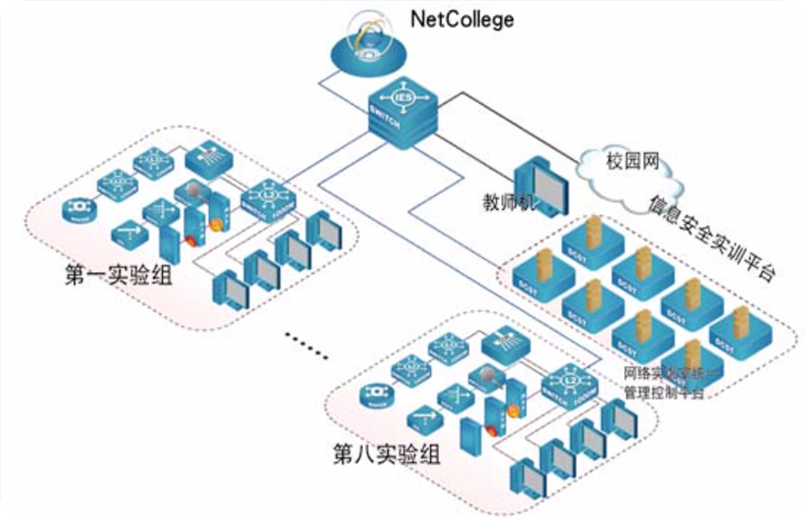 可单独接入终端机器进行安全实验,更可配合K8凯发一触即发DCFW防火墙、DCSM内网安全管理系统、K8凯发一触即发交换机、路由器、DCFS、NETLOG等基础安全及网络实验室模块组合成为真实攻防的全局环境中。